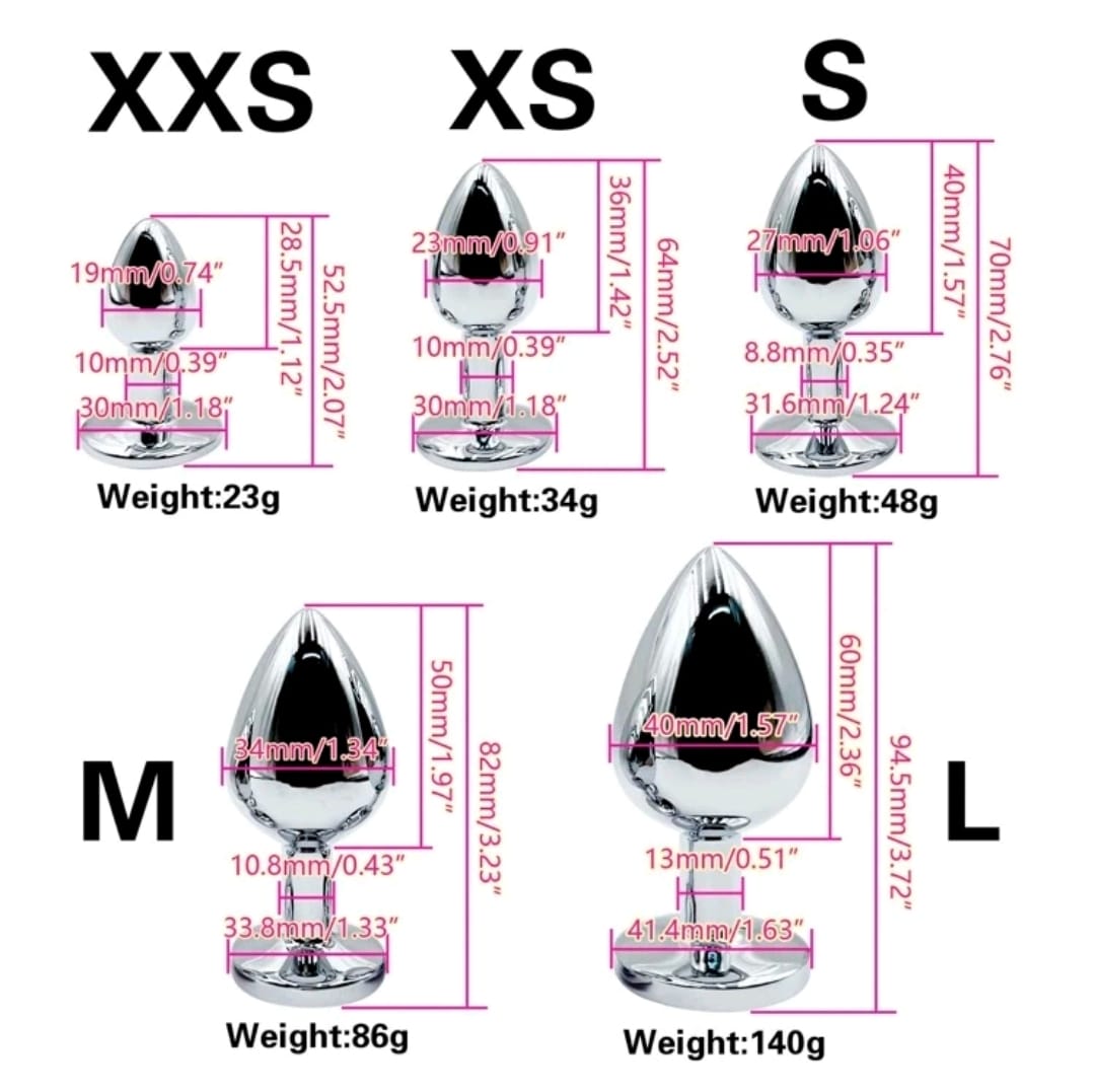 Tamaño: 2.7 x 1.2 pulgadas Material: Acero inoxidable + Joya tipo diamante Ideal para: Iniciación anal, juegos previos, estimulación prolongada